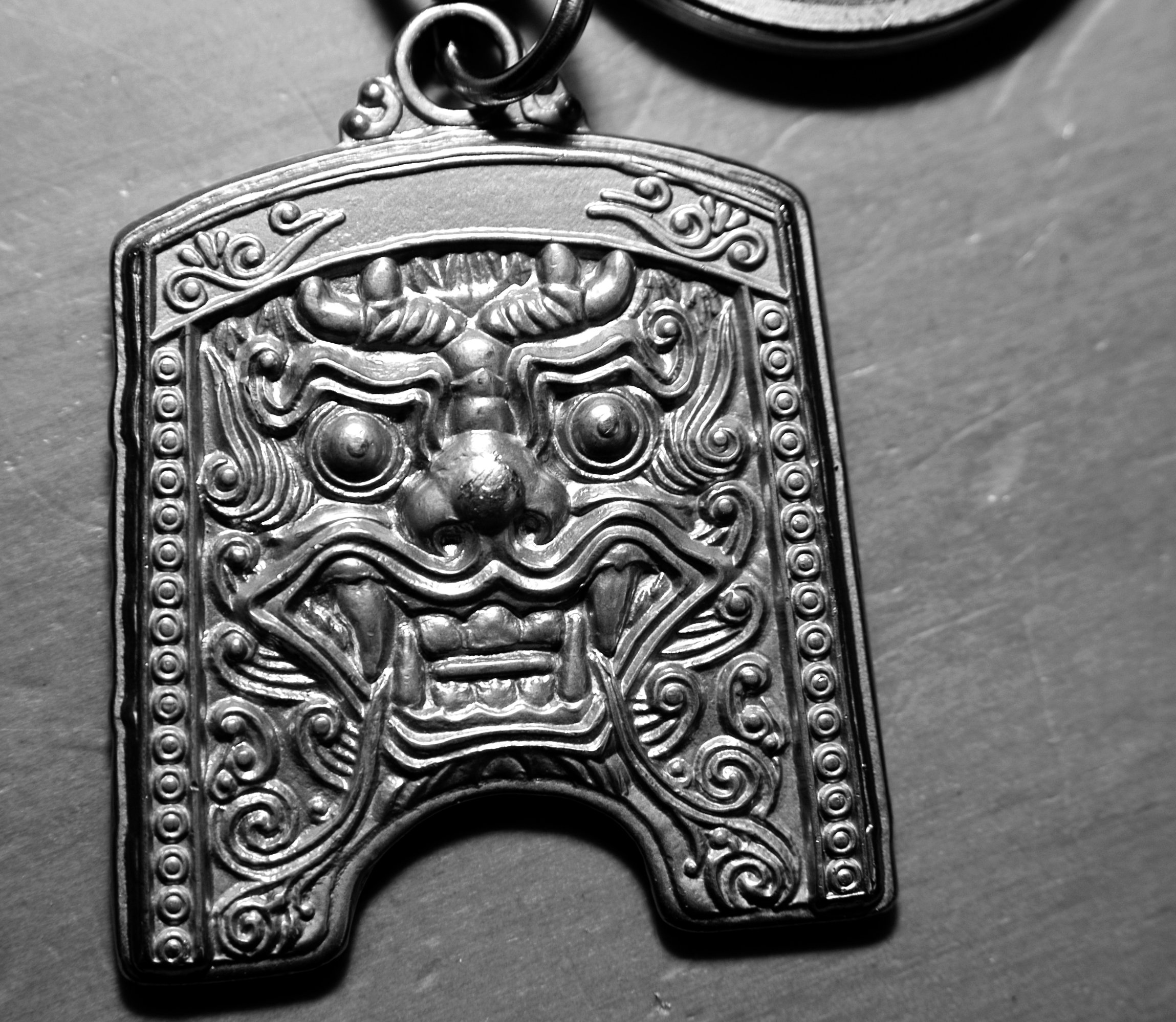 This is a key chain that KT got in Korea. It’s called a “monster mask” tile and it lives on her backpack. We have a few other Korea pieces, but they all have smiles on them…takes away the mean look…